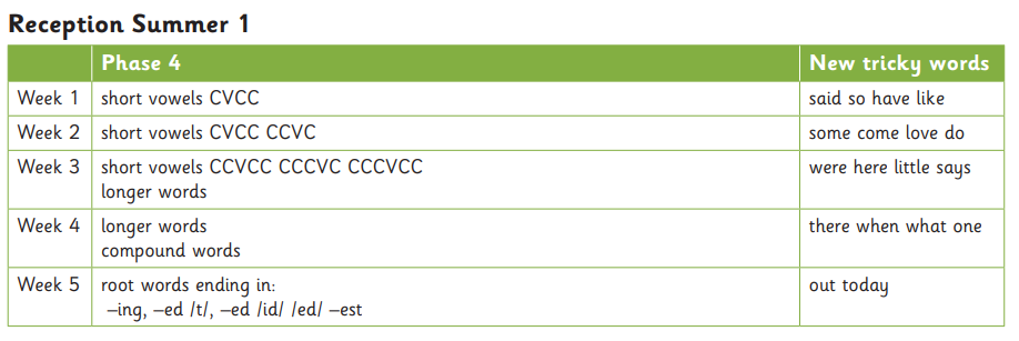 In Reception, the children will start ‘Phase 4’ phonics in the Summer Term.
